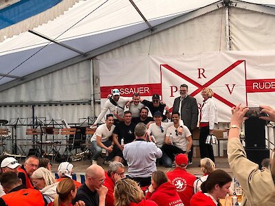 Aber wie das Schicksal so spielt, sollte es noch schlimmer kommen… Unsere Steuerfrau, die an diesem Wochenende schon als krankheitsbedingter Ersatz eingesprungen war, meldete sich (leider und unverschuldet) am Renntag in den frühen Morgenstunden ebenfalls krank und musste den ganzen schönen, sonnigen Samstag im Hotelzimmer verbringen. Also ging die Suche nach dem nächsten Ersatz weiter. Nach einigem Hin und Her hatten wir dann Glück und konnten den Wurzner Steuermann gewinnen, nochmal bei uns im Boot Platz zu nehmen und uns zu steuern.