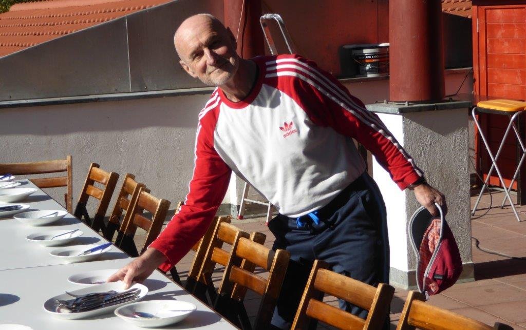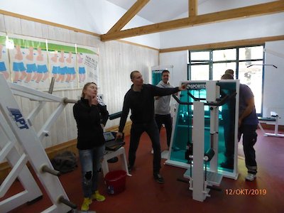 - Kraftraum: Die jungen Wilden (Annie, Konrad, Thomas, Evgenij u.a.) haben den Kraftraum nicht nur ihren Vorstellungen entsprechend (in Abstimmung und Mitwirkung des Sportvorstandes) eingerichtet, sondern auch gründlich gereinigt und die Stellflächen der Geräte „befilzt“, damit der fast neue Belag keinen Schaden nimmt.