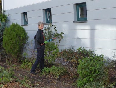 Im Vorfeld hatten Elli und Laura schon Fenster geputzt und Flemming in den Freiflächen (Kompost) gewirkt. Friedemann und Wilhelm hatten bereits das Treppenhaus gereinigt und vergammelte Pflanzen und Plastedekorationen entsorgt.