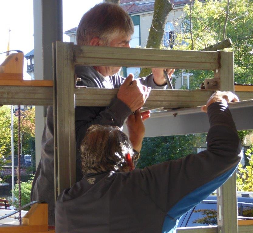 - Untere Fensterreihe putzen: Nils ist trotz ziemlicher individueller Belastung gekommen und hat ringsum die kleinen unteren Fenster komplett gereinigt.