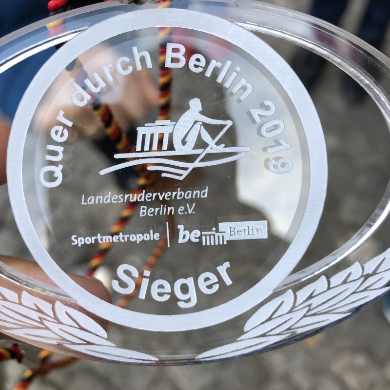 So problemlos wie der Boots- und Mannschaftstransport erfolgte, verlief auch unser Rennen. Ideale Wasserbedingungen und eine sehr gute Leistung von Steuermann und Mannschaft sicherten uns den Sieg. Mit einem knappen Vorsprung von 2,72 s setzten wir uns gegen unsere Verfolger, der Rgm. RG Wiking Berlin und RK am Wannsee, durch.
