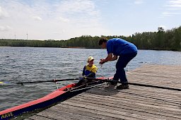 Michelle und Anabel (bd. AK 13) schafften doppelt am Siegersteg anzulegen, ihre Zeiten im Einer und Zweier waren super. Erstmals bei einer grpßen Regatta mit Siegmedeille dekoriert fuhren Leo (AK 14, Karl, AK 12 und Vincent AK 10 wieder nach Hause. Maurice setzte seiner Siegserie in diesem Jahr einen neuen Erfolg hinzu: im Einer AK 13 Leichtgewicht war er nicht zu schlagen.