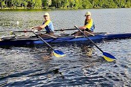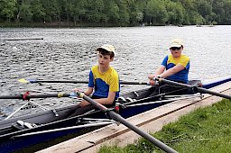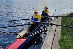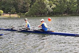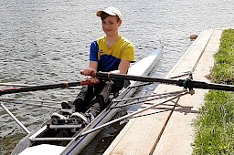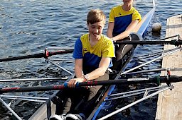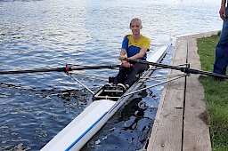Bis auf unsere Neulinge Clara und Luise, die jedoch prima Leistungen ablieferten, war für alle nach dem Ziel dann der Siegersteg anzusteuern. Das hier aufgenommene Foto zierte dann die später abzuholende Urkunde. Zwei Urkunden vorweisen konnten Anabel, Michelle und Maurice, die alle ihre Rennen mit großem Vorsprung gewannen. Doch auch Leo sowie Karl mit Jakob, Nils mit Florian und Lilo mit Maurice ruderten jeweils dem Feld voraus, ohne ernsthaft bedrängt worden zu sein. Die Konkurrenz kam aus dem Großraum Berlin und Mecklenburg-Vorpommern, aus Brandenburg bis hin nach Frankfurt/Oder und aus Sachsen-Anhalt, und war damit viel umfangreicher als in Eilenburg. Große Freude, dass wir hier so gut bestehen konnten..